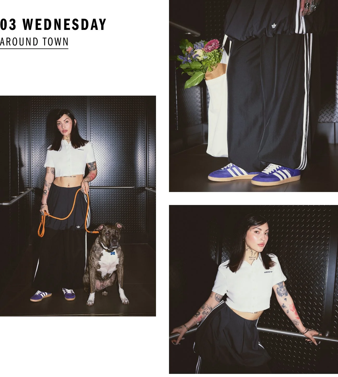 This editorial piece was the result of creative collaboration between copy, design, and art direction. We worked with a limited budget to formulate a fictitious schedule for our talent, complete with scene and schedule appropriate outfits that revolved around the Samba shoe. I came up with bespoke names for each theme, complete with pithy write ups breaking down the specifics of each ensemble.