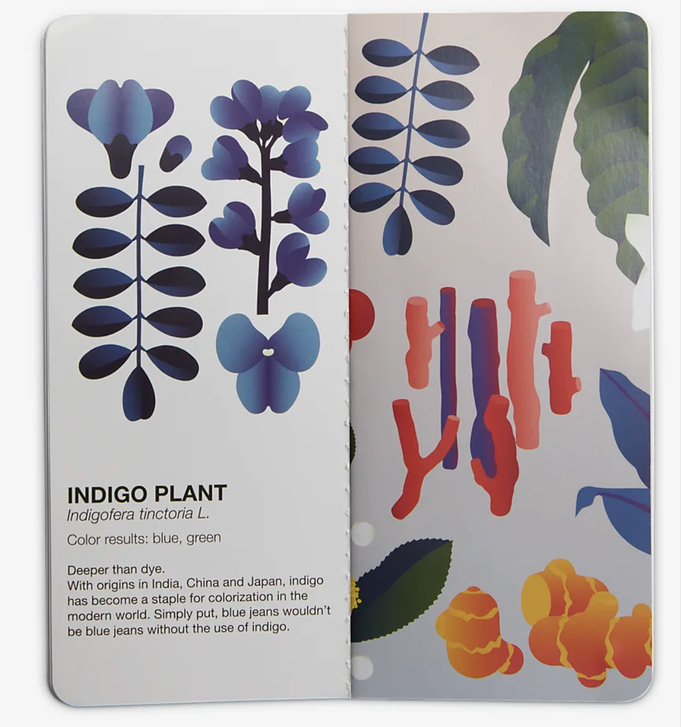 The included wellness journal contained the historical relevance of plants found in Asian countries that have influenced culture at large. I wrote bios for these plants and tied them back to the Asuna sandal, as all of these plants contain unique dyeing properties that encouraged consumers to look into their own pantries for ingredients from their own cultures to create unique patters for their sandals.